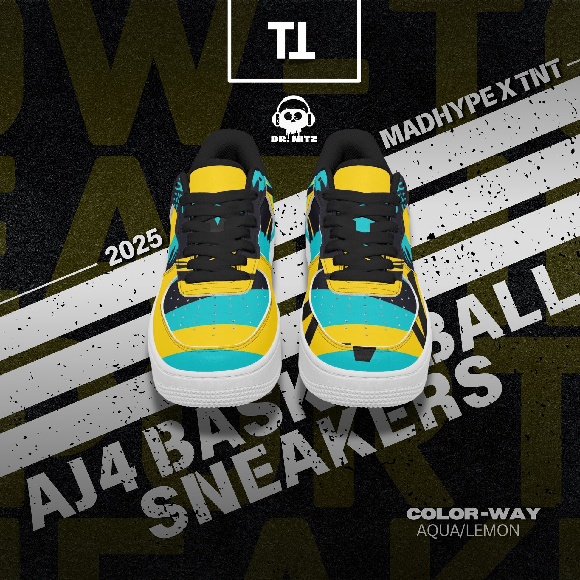 MADHYPE X TNT isn’t just a sneaker—it’s an attitude. Designed for those who lead, not follow, this low-top masterpiece fuses bold design with unbeatable performance. The premium leather upper delivers a sleek, durable finish, while the electrifying yellow and aqua blue artwork sets you apart from the crowd. Whether you’re stepping onto the streets or making moves behind the scenes, these sneakers are built to turn heads and keep you comfortable all day.